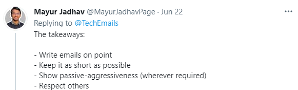 在这则推文底下也有网友总结了邮件沟通的几个要点: