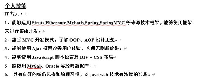 给大家看一下,我当年的简历中的一部分内容,真的,看的我尴尬癌都快犯了: