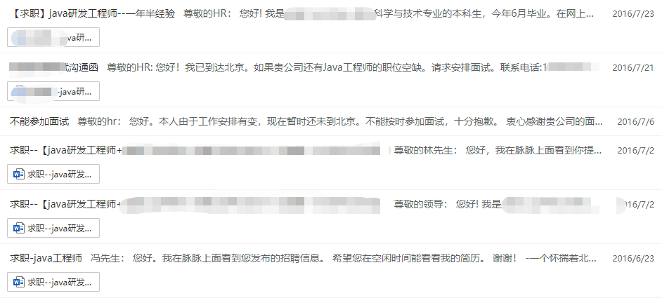 我去翻了那个时候的邮件记录,其实我通过邮件发了很多份简历出去,这是部分的截图: