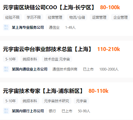 元宇宙人才需求增加,薪资上涨