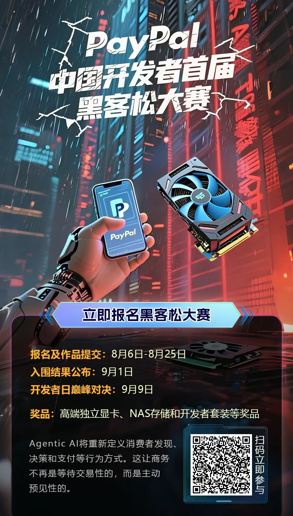 在生成式AI与多模态大模型的驱动下,商业支付领域正在经历一场范式级跃迁。Agentic AI(智能代理AI)通过实时行为分析、意图预测和自主决策,正在颠覆传统的"请求-响应"式交易模式,让商业从“被动交易”进化为“主动预见”。这场技术革命需要具备全栈视野的创新者——PayPal中国首届开发者黑客松大赛(2025年8月6日-9月9日)诚邀您共同探索下一代智能支付架构。在这里,您的每一个算法都可能重新定义商业的时延边界和转化效率!
