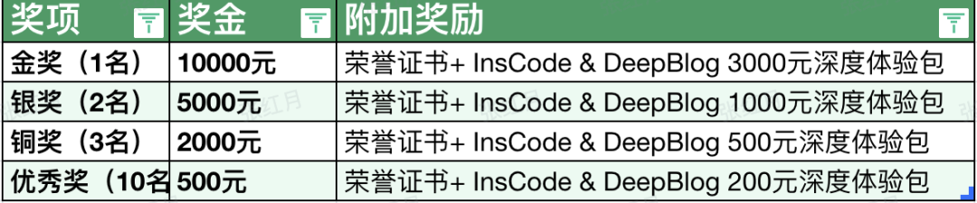 丰厚奖励,为创意加冕: 本次大赛设立了极具吸引力的奖金与权益包,助力你的创新之路走得更远。