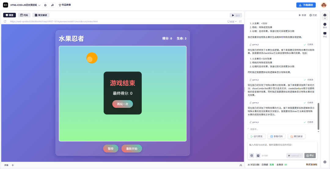 所见:一篇讲解“HTML+CSS+JS切水果游戏”的博客。