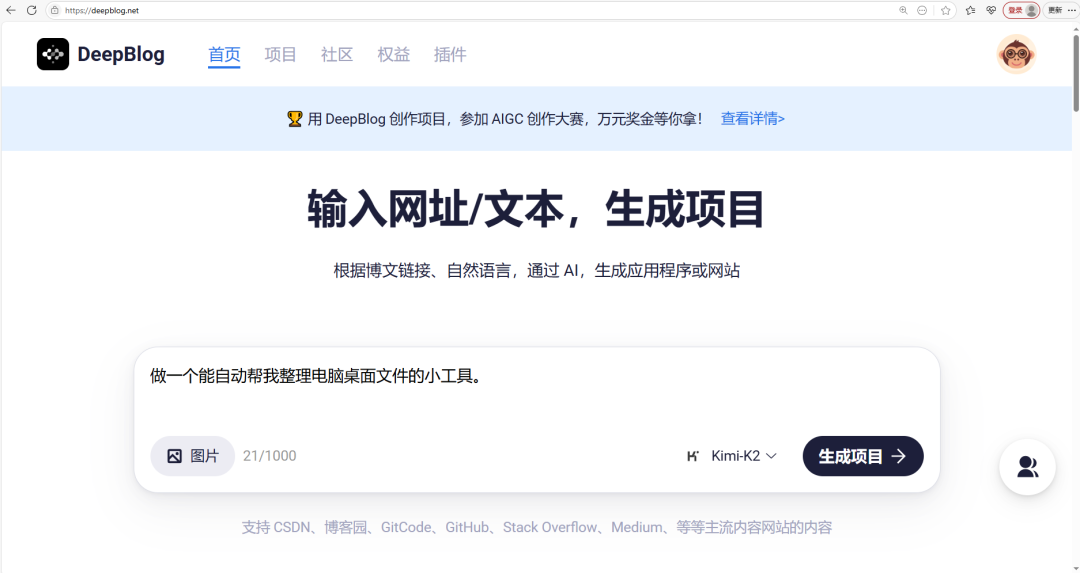 无论你是资深程序员,还是充满好奇心的学生,甚至是来自其他行业的跨界创新者,DeepBlog都能帮助你轻松进行AIGC项目创作。