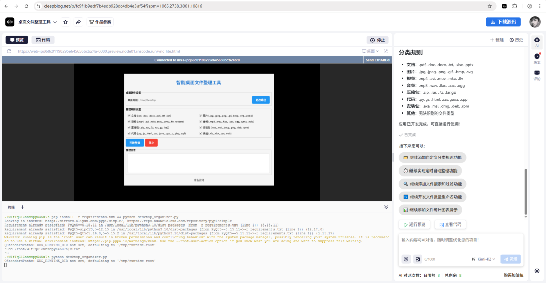 事成:瞬间生成一个结构清晰、带GUI界面或命令行操作的Python脚本。