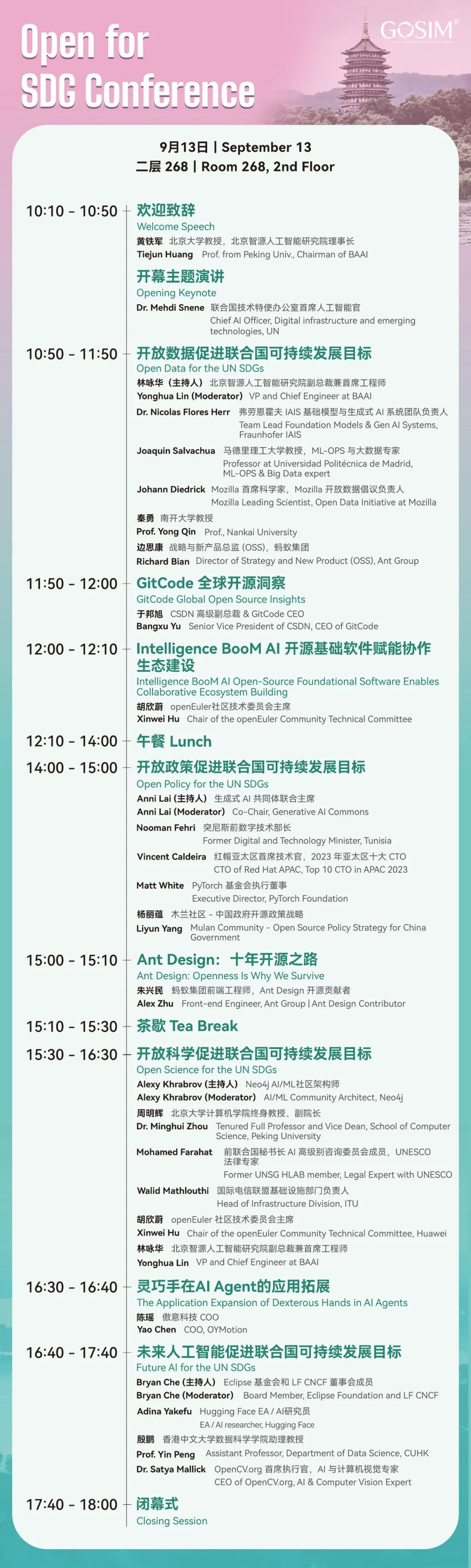 Open for SDG Conference 由联合国、GOSIM、智源联合主办,这不只是一场知识的盛宴,更是一次全球性的行动号召,为构建一个更包容、公平和可持续的未来奠定坚实基础,将成为连接全球开源社区、技术创新者与可持续发展实践者的关键桥梁。