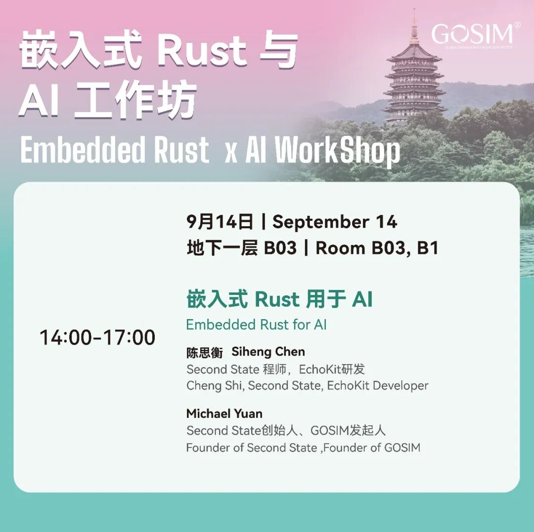 9 月 14 日下午,嵌入式 Rust 与 AI 工作坊聚焦端侧智能与系统级开发;Makepad 工作坊展示下一代界面与交互设计的新思路。