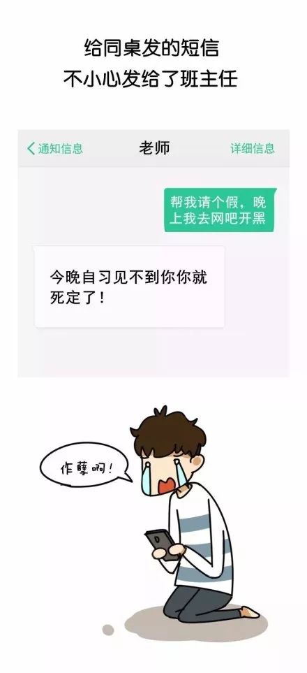 有天在寝室懒得去上晚自习,本想是给同桌发条短信帮我请个假,结果: