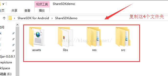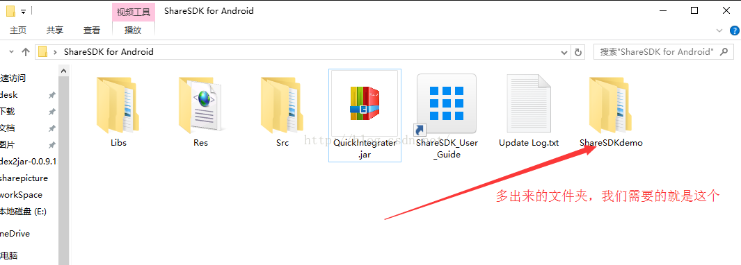 ####5: 点击ShareSDK for Android进入。你会发现多出一个ShareSDKdemo文件夹