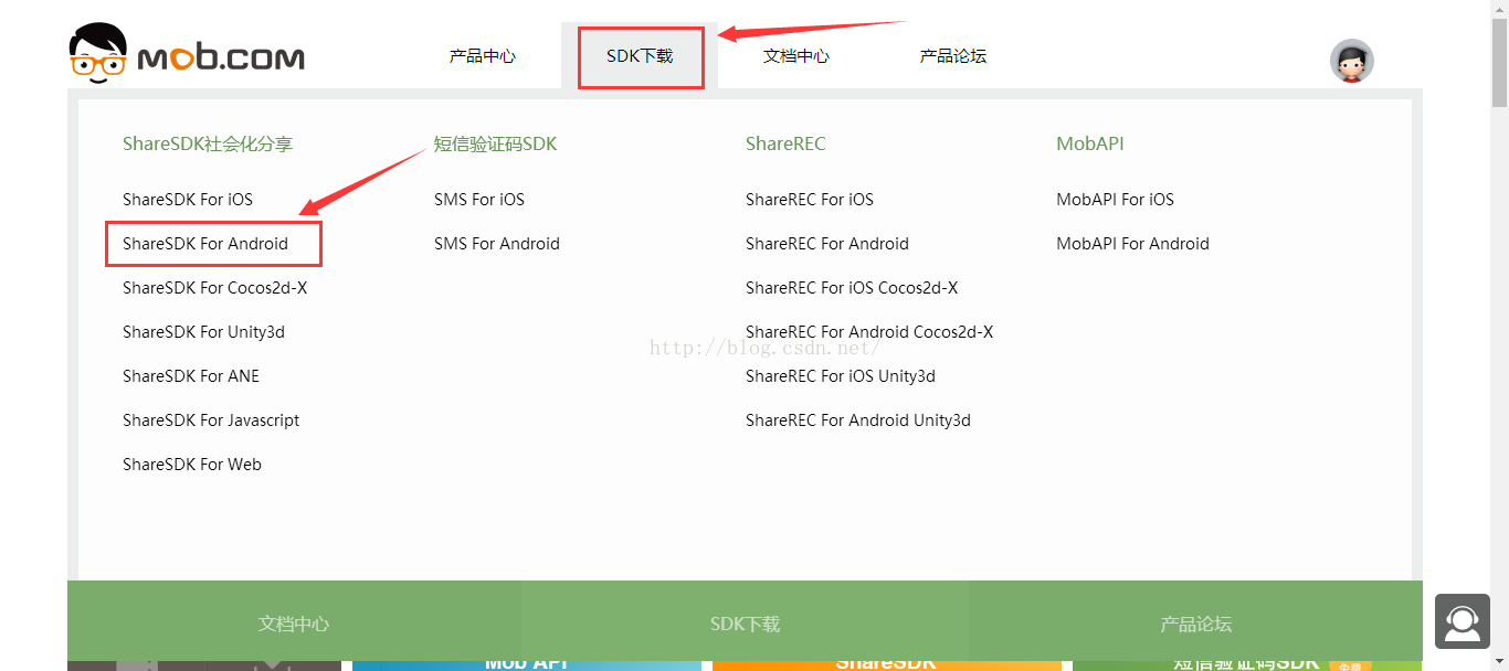 ,注册里面的公司,称呼什么的随便写就可以,注册完成之后点击SDK下载,然后点击ShareSDK For Android