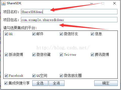 另一种方法是: 需要先确保已经正确配置了JDK,启动终端,cd进入“Share SDK for Android”目录,输入: java -jar QuickIntegrater.jar 可启动QuickIntegrater,具体步骤如下: