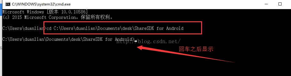 ####3: cd进入“Share SDK for Android”目录,然后回车,如下
