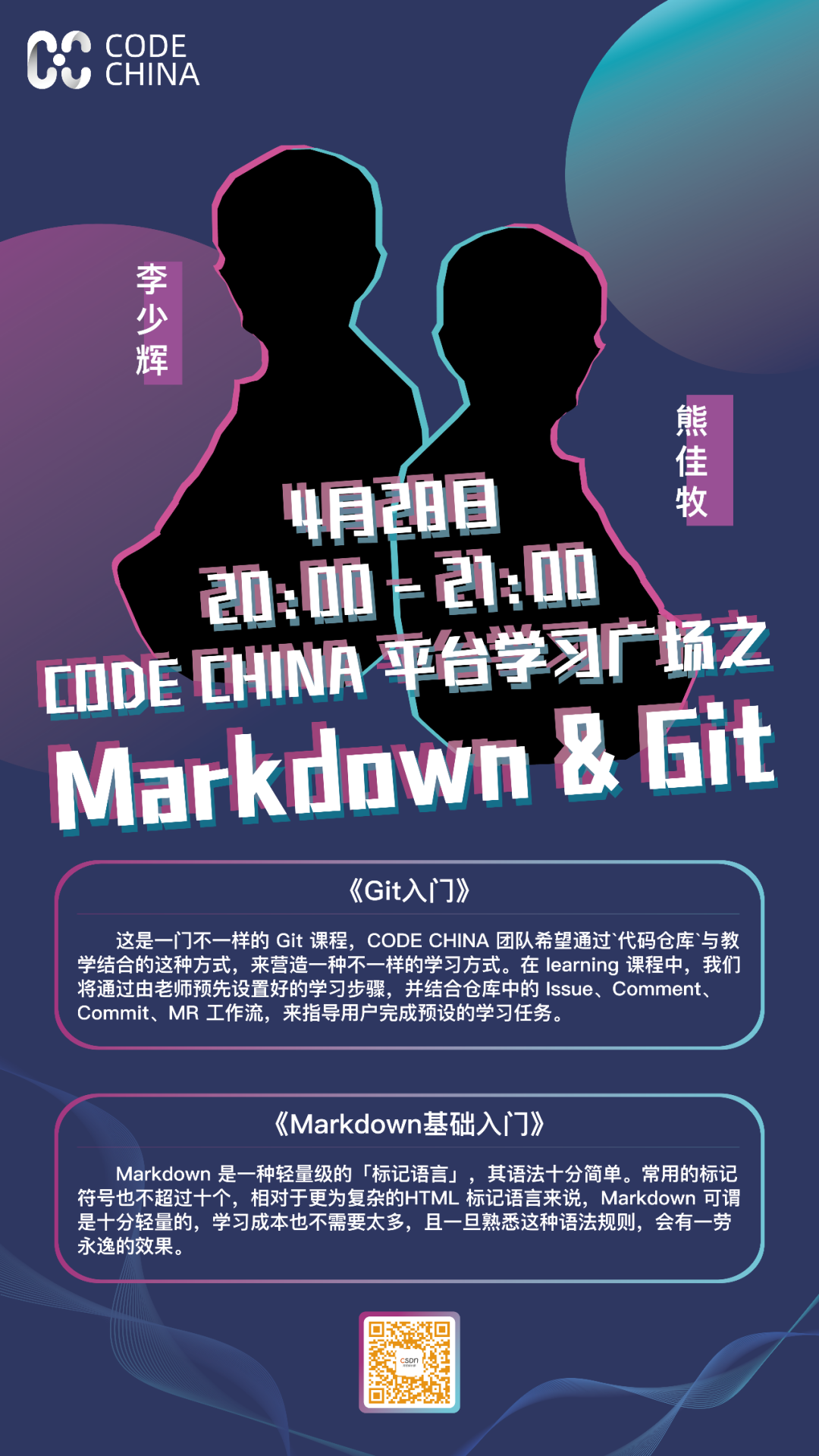 直播主题: CODE CHINA平台学习广场之Markdown、Git
