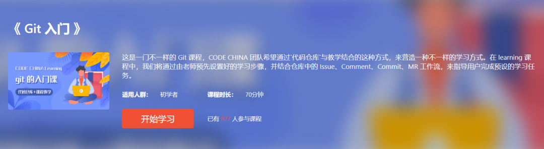 这是一门不一样的 Git 课程,CODE CHINA 团队希望通过`代码仓库`与教学结合的这种方式,来营造一种不一样的学习方式。在 learning 课程中,我们将通过由老师预先设置好的学习步骤,并结合仓库中的 Issue、Comment、Commit、MR 工作流,来指导用户完成预设的学习任务。