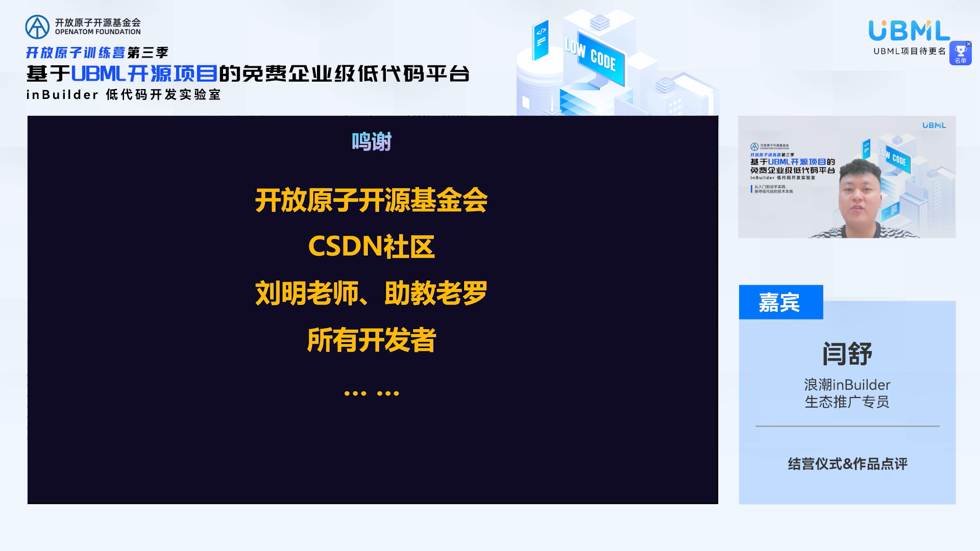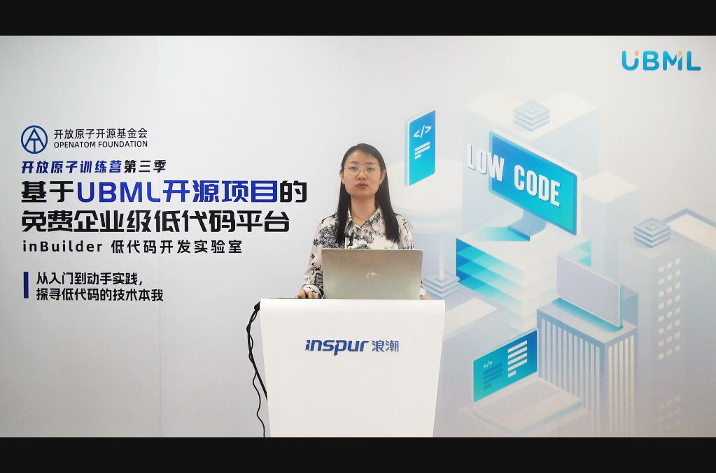 同时也邀请到UBML开源项目布道师陈圣杰、浪潮inBuilder生态推广负责人毛瑞雪,分别讲解了UBML开源项目和inBuilder低代码平台开源社区版的技术特性。