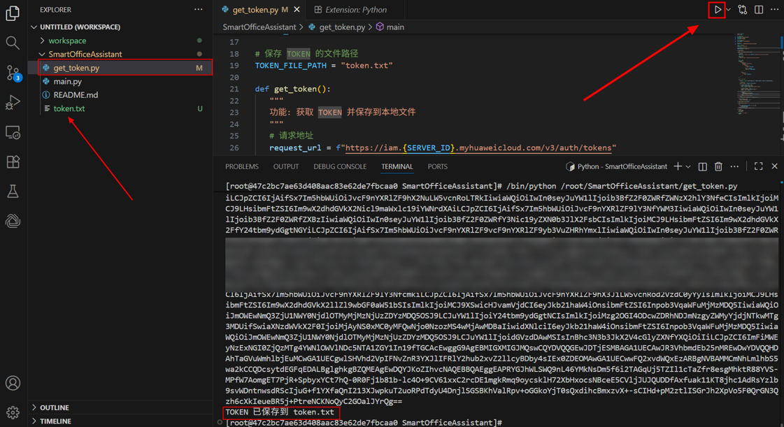在SmartOfficeAssistant文件夹下,查看编辑get_token.py文件。