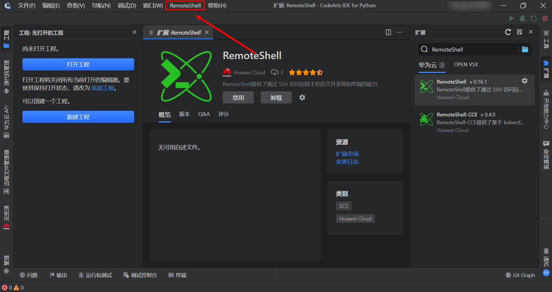 1. 下载CodeArts IDE并安装RemoteShell插件