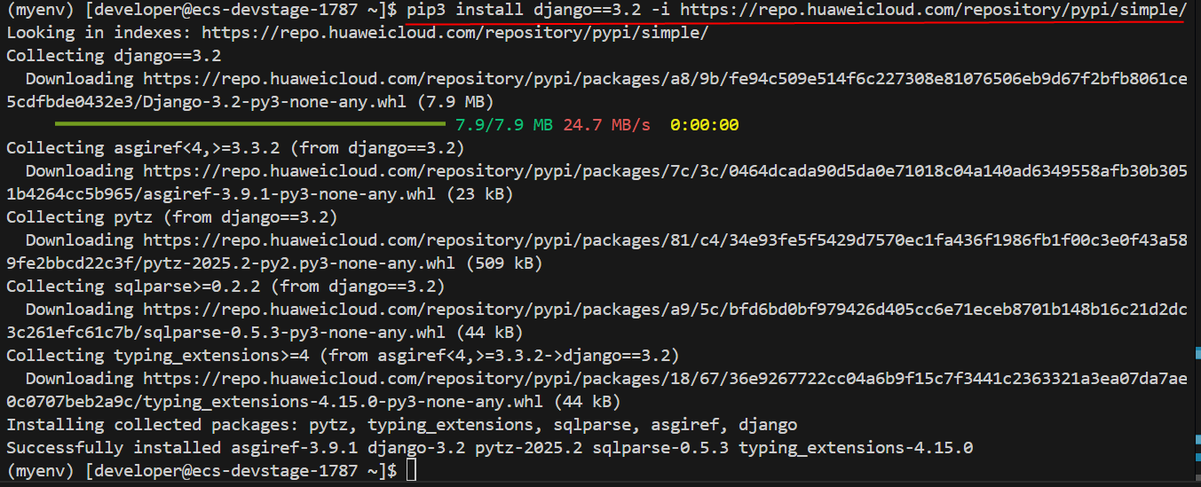 pip3 install django==3.2 -i https://repo.huaweicloud.com/repository/pypi/simple/