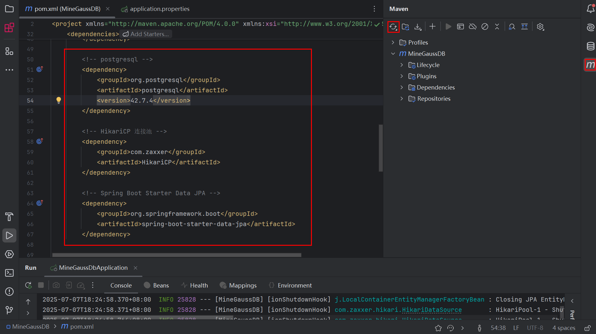 添加依赖后,点击 Maven->Reload All Maven Projects,同步工程: