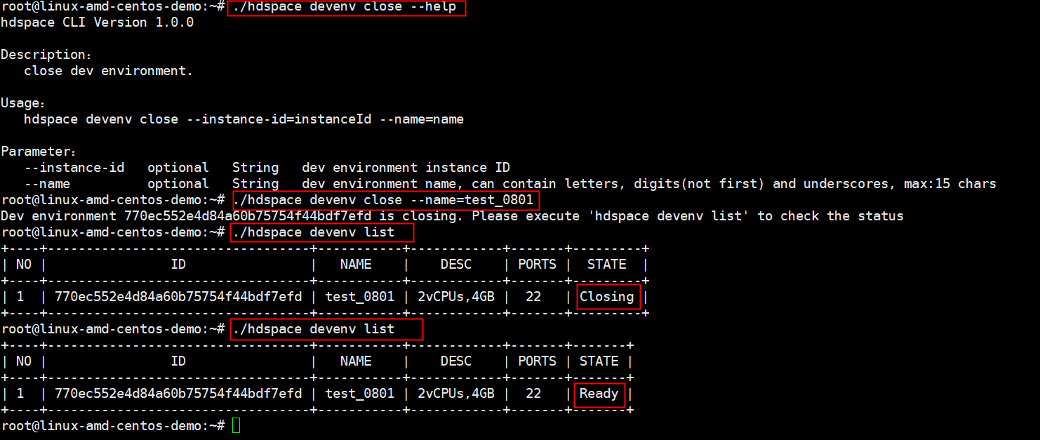 至此,我们已经完成了在Linux系统通过cli命令创建和管理云开环境的操作,开发者可以基于最基本的操作指导,进行更多功能的探索操作。