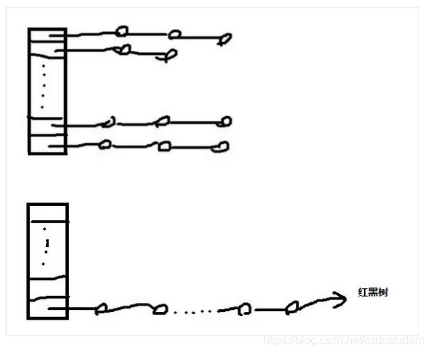 在 Java8 之前,其底层实现是数组 + 链表实现,Java8 使用了数组 + 链表 + 红黑树实现。此时你可以简单的在纸上画图分析: