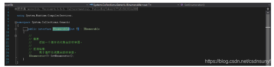 可以看到,在泛型接口的T前面有一个out关键字修饰,而且T只能是返回值类型,不能作为参数类型,这就是协变。使用了协变以后,左边声明的是基类,右边可以声明基类或者基类的子类。