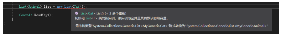 IMyList<Cat, Animal> myList4 = new MyList<Animal, Cat>();//逆变+协变