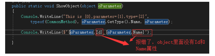 从上面的结果中我们可以看出这三个方法,除了传入的参数不同外,其里面实现的功能都是一样的。在1.0版的时候,还没有泛型这个概念,那么怎么办呢。相信很多人会想到了OOP三大特性之一的继承,我们知道,C#语言中,object是所有类型的基类,将上面的代码进行以下优化: