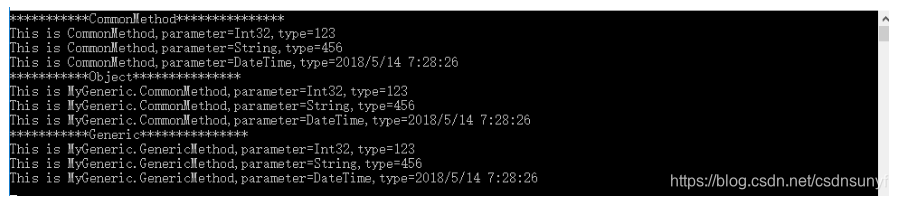 从上面的结果中我们可以看出,使用Object类型达到了我们的要求,解决了代码的可复用。可能有人会问定义的是object类型的,为什么可以传入int、string等类型呢?原因有二: