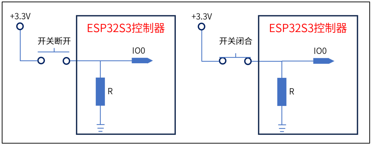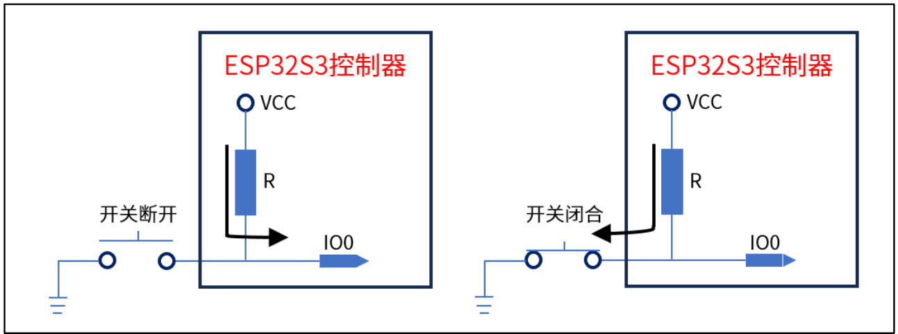 在 ESP32S3 控制器内部除了集成上拉电阻,还有下拉电阻,通过在