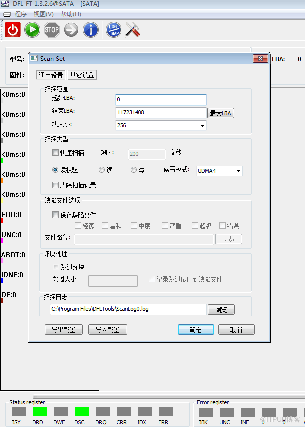 步骤2:DFL硬盘扫描>点击设置图标>一般设置>扫描类型>写(补零进硬盘)