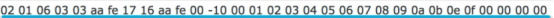 17 16 aa fe 00 -10 00 01 02 03 04 05 06 07 08 09 0a 0b 0e 0f 00 00 00 00,是一个AD Structure:Data的长度是17(23bytes);Data是16 aa fe 00 -10 00 01 02 03 04 05 06 07 08 09 0a 0b 0e 0f 00 00 00 00;AD Type是16(Service Data);AD Data是aa fe 00 -10 00 01 02 03 04 05 06 07 08 09 0a 0b 0e 0f 00 00 00 00,是Eddystone profile具体的Service Data。