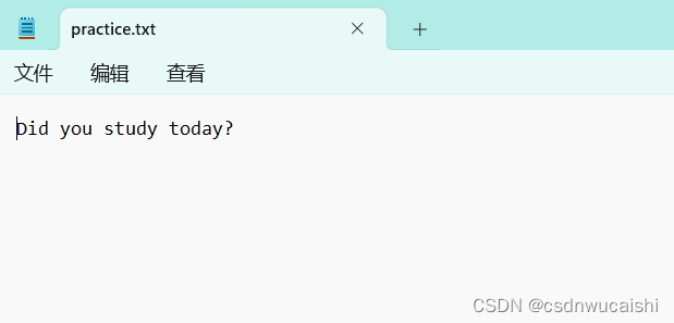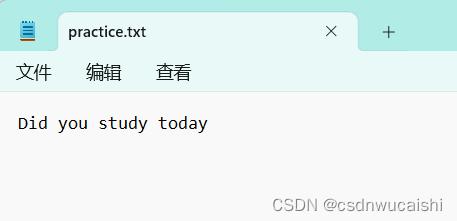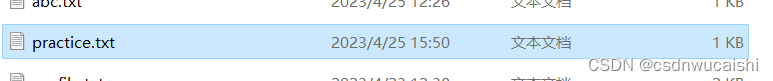 创建了一个名为practice.txt的文本文件,并保存了写入的数据,注意当原来无此文件则会创建文件,为"w"即write时则会覆盖该文件,写入方式为"a"即append时会在原有数据上追加数据。如果是二进制文件则只需要将原来的"r","w","a",改为"rb","rw","ra"即可