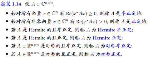 注意,本文中正定和半正定矩阵不要求是对称或Hermite的。