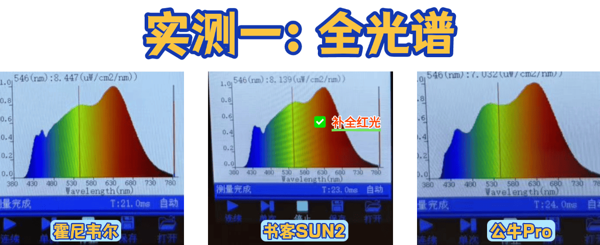 公牛Pro:公牛是一款紫光全光谱激发的护眼灯,实际蓝光峰值在0.6左右,整体的光谱分布比较好,但虽然光线柔和度上还有优化的空间。