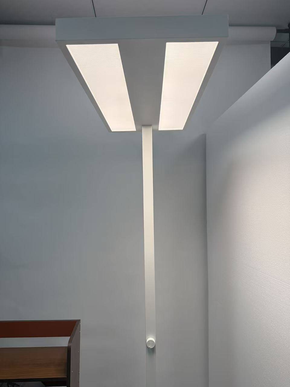 中心照度,指的是灯光直射到书桌正中位置时的亮度水平。按照国标AA 级照明标准(GB/T9473-2022),中央区域的照度需达到 500lx以上,而整个桌面的平均照度也不能低于 250lx。对于护眼大路灯来说, 建议选择500lx以上,2500lx以下的护眼灯,亮度不足容易导致眼睛紧张和疲劳,过亮则会造成刺眼甚至炫光,真正优秀的护眼灯,核心在于把光线调控在既足够清晰又兼顾舒适的范围里。
