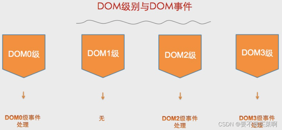 DOM级别一共可以分为4个级别:DOM0级,DOM1级,DOM2级和 DOM3级,而DOM事件分为3个级别:DOM0级事件处理,DOM2级事件处理和DOM3级事件处理。如下图所示: