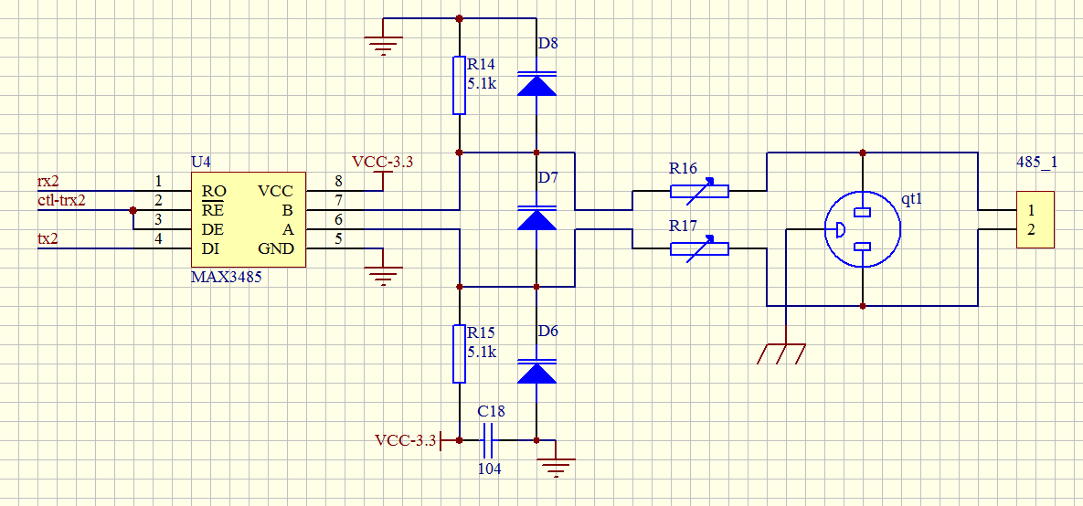 下图是我一直使用的RS485接口电路图