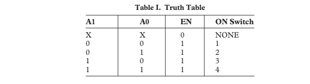 ADG704的真值表清晰地定义了如何控制这四路开关:
