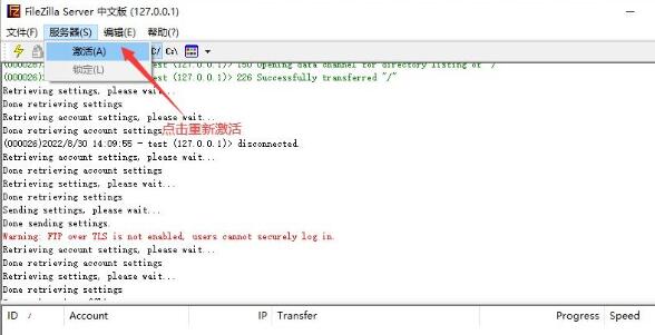 7,操作好后,再重新点击一次【服务器】中的【激活】,这样服务器就重新被激活了!