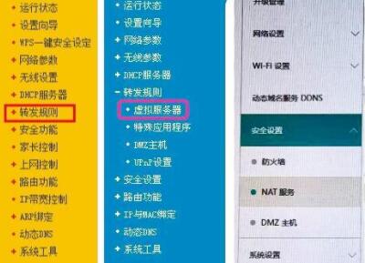 在管理界面中找到“端口转发”“虚拟服务器”“NAT设置”等选项,通常位于“应用管理”或“高级设置”或“网络设置”菜单下,不同路由型号位置名称有所差异,功能作用是一样的。