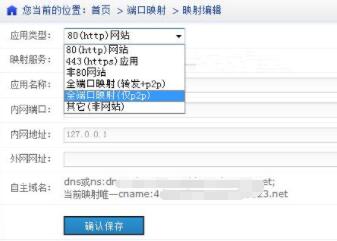 映射类型:需要结合自己本地实际应用场景和访问需求来选择合适对应的,包括80、443、非80、全端口映射等多个类型选项;