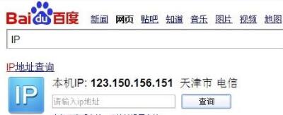 浏览器打开百度搜索页面,输入“IP”这二字母或“IP地址”这几个字,回车后即可看到本地网络上网出口使用的具体公网IP地址信息、网络商、地区等。