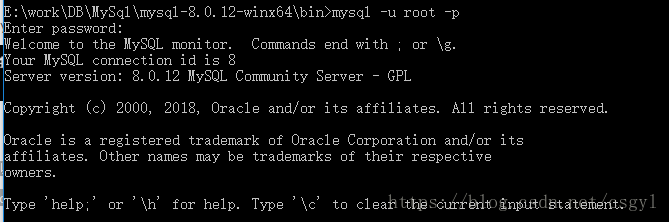 E:\work\DB\MySql\mysql-8.0.12-winx64\bin>mysql -u root -p