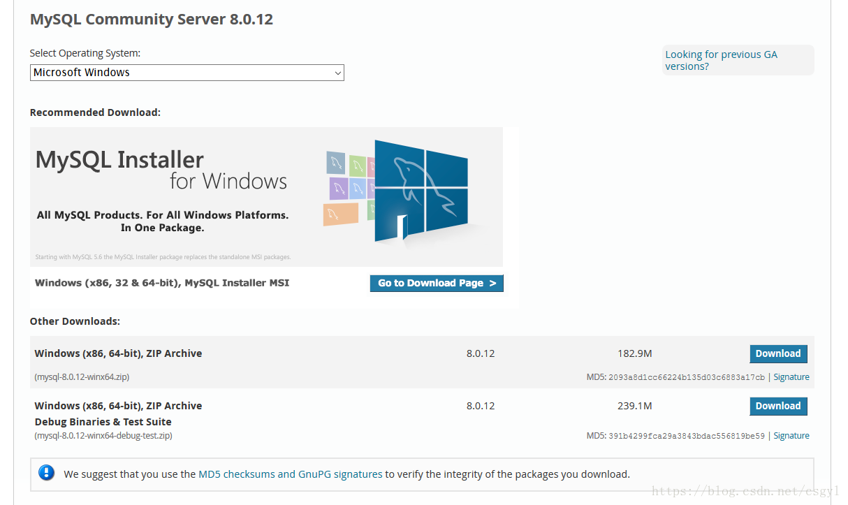 官方下载地址:根据自己系统的选择下载安装文件https://dev.mysql.com/downloads/mysql/