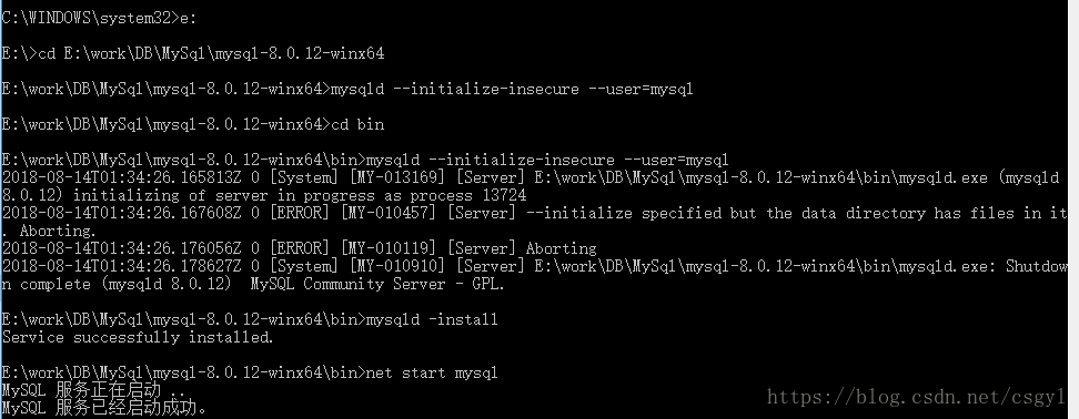 cd E:\work\DB\MySql\mysql-8.0.12-winx64\bin