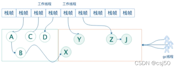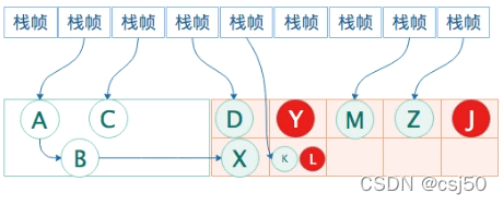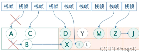 判断X,要先判断B是不是死亡了,判断B,要先判断A是不是死亡了,判断A,要先判断栈帧是不是断开,所以要扫描整个年轻代。