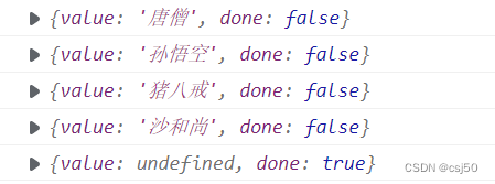 当循环到第5次,done变为true,表示循环已经完成。value是undefined。