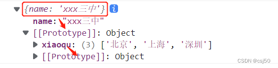 school对象的原型对象是cities(数组),cities对象的原型对象是Object。