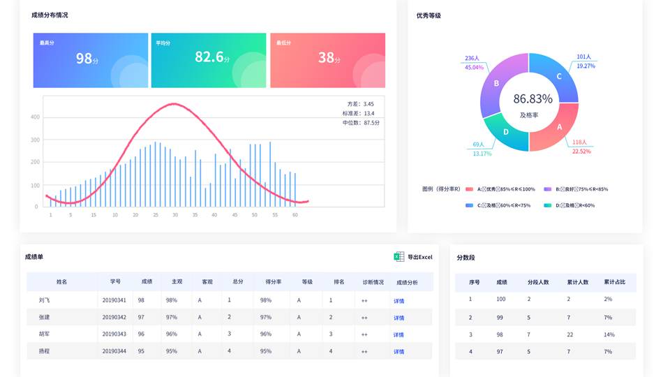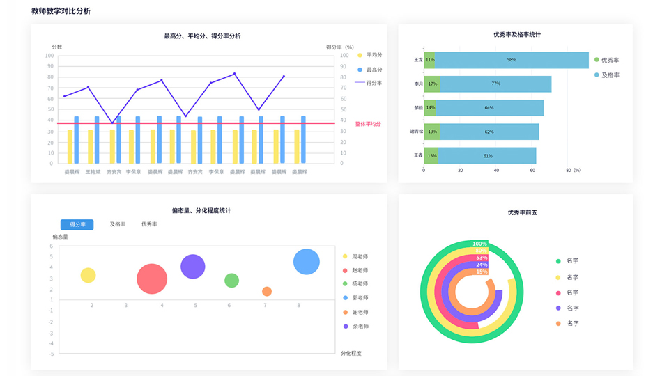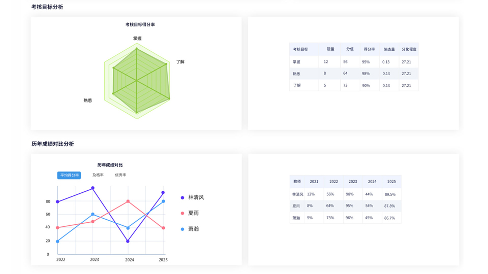成绩分析并不注定是枯燥的数字堆砌。借助雷达图、趋势线、热力图等可视化工具,复杂的学情数据变得直观易懂。教师可通过能力分布图快速比较不同群体学生的优势与短板,也可以通过班级整体进步曲线评估教学策略的有效性,从而及时调整节奏和方法。可视化打破了数据与决策之间的壁垒,让教学管理更加有的放矢。